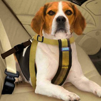 Your dog should be placed in a harness such as this one if you are travelling long distances in the car (image courtesy of www.dougalsden.co.uk)