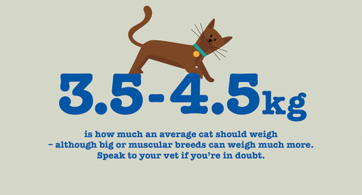 As a rough guide, you should be able to feel but not see your cat’s ribs; you can test this by stroking her firmly down both sides at once. If your cat is very well padded or has a swinging pouch, you may need to carefully adjust her food or exercise level, although it’s a good idea to first book a check-up with your vet to rule out any underlying health issues.