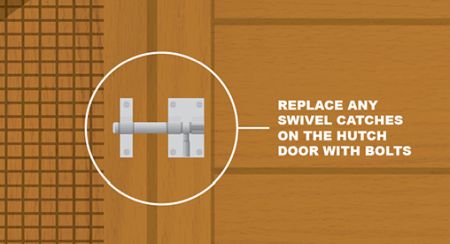 Some basic DIY jobs can help fox-proof the rabbit hutch. Replace any swivel catches on the hutch door with bolts. Give the run a thorough once-over to ensure there are no rusty or weak areas in the wire that can be chewed or wriggled through, or that predators such as cats, dogs or foxes can squeeze through.