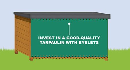 Cover the outside of the hutch with silver-backed mats to add an extra layer, and if the weather drops below zero, wrap an old blanket or duvet around the hutch. Invest in a good-quality tarpaulin with eyelets that you can put right over the hutch and run and secure when it’s very cold, wet or windy. If your rabbits’ living quarters are in a shed, you can insulate the inside walls with commercial wall-insulation boards.